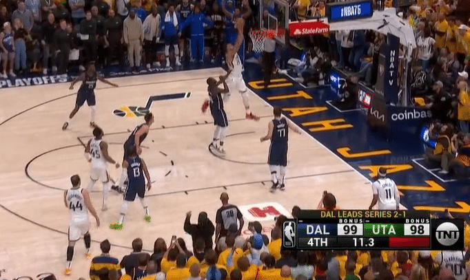 这场比赛,双方打得跌宕起伏。独行侠迎来东契奇的复出,但1-2落后的爵士背水一战,一度领先16分之多。独行侠在第三节单节打出39-24的比分,重新占据优势。双方末节决战,一直胶着到最后时刻。终场前39.1秒,东契奇军训戈贝尔命中三分球,独行侠99-95领先。