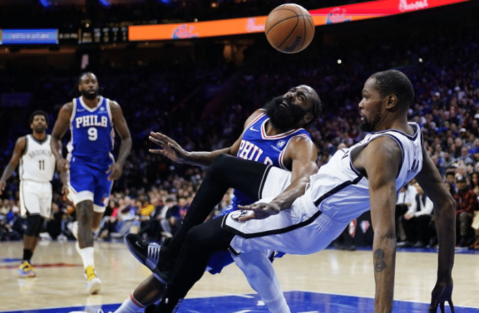 哈登曾是篮网三巨头之一,本赛季,哈登为篮网出战44场常规赛,场均拿到22.5分10.2助攻8篮板,但赛季中期,哈登申请离开篮网,最终在交易截止日被篮网交易到76人,哈登如愿离队并且联手恩比德,篮网三巨头解体,当初杜兰特、欧文和哈登三兄弟的冲冠梦想沦为泡影。