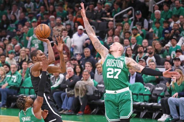 24直播网04月22日讯 ,凯尔特人114-107击败篮网,总比分2-0领先。绿军队史上取得过41次系列赛2-0领先,而他们最终40次胜出,只有1次被逆转。《纽约邮报》写道:“很难想象在未来11天,这个成绩会变成40胜2负。很难想象这个版本的杜兰特和G2版本的欧文能率队获胜。”显然,这家纽约媒体看衰篮网的前景。