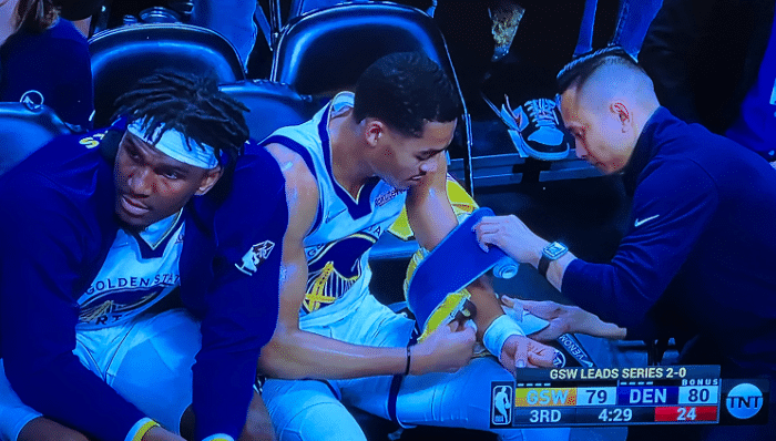 24直播网04月22日讯 ,NBA季后赛掘金VS勇士第三场,上半场勇士领先10分,但第三节初期被对手扳平比分,期间还出现了勇士核心之一的追梦格林(德雷蒙德-格林)受伤的一幕,令人非常揪心。
