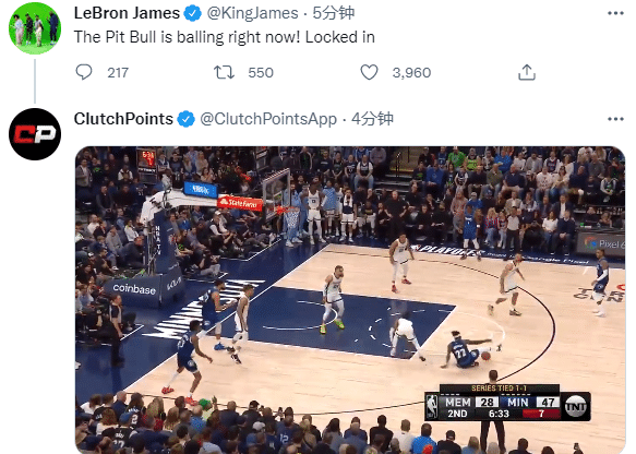 24直播网04月22日讯 ,NBA季后赛森林狼再战灰熊,G3再次大战,森林狼悍将贝弗利打出血性和侵略性,多次单挑莫兰特并且做出嘲讽莫兰特太矮小的手势;急中生智砸板空接上篮一幕引热议,詹姆斯发推盛赞:斗牛犬正在大秀特秀!锁定!