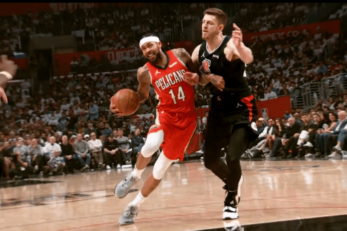 第二节,鹈鹕一度领先到16分,上半场最后1分钟,快船小个阵容凑效,不过半场打完快船46-56落后10分,此节英格拉姆神勇不再,单节4投1中仅仅贡献2分。