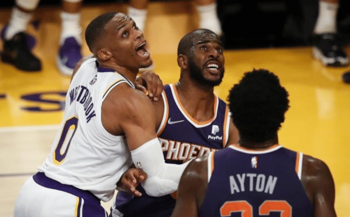 威少登场的这两场比赛问题尤其明显,单独搭档詹姆斯或浓眉的效果都比较差,两战合计出现了15次失误,19次出手只进了4个球。第一场是三分投不进,9分钟就送出了6次失误。第二场则是送出9次失误,12中3,好消息是投进三分球了。但是他盲目的突破分球导致失误频频,在外线的“僵尸跳投”着实不怎么样,目前来看他与湖人不适配!