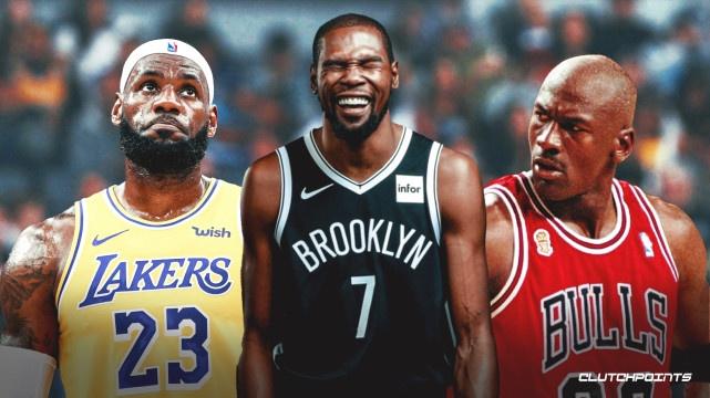 乔丹生涯场均30.1分6.2篮板5.3助攻,夺得6座总冠军。生涯至今,詹姆斯场均27分7.4篮板7.4助攻,夺得4座总冠军。杜兰特场均27分7.1篮板4.2助攻,夺得2座总冠军。