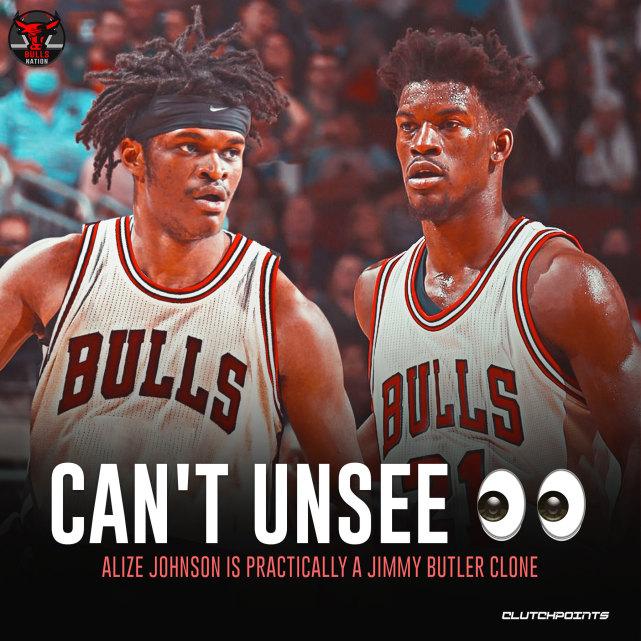24直播网10月11日讯 公牛102-101险胜骑士,取得季前赛三连胜。篮网弃将阿利泽-约翰逊替补出场17分钟,就贡献14分11篮板1抢断,投篮6中5,效率极高。三场季前赛,约翰逊都表现出色。由于长相酷似吉米-巴特勒,已经有芝加哥媒体写道:约翰逊就像是再次加盟公牛的巴特勒。
