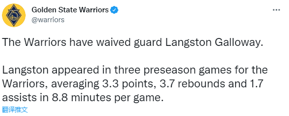 24直播网10月10日讯 ,勇士官方正式宣布,球队已经裁掉了后卫兰斯顿-加洛韦;季前赛出战三场,加洛韦的表现不佳,因此勇士提前宣布裁掉他。