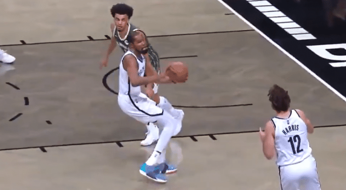 除了封盖之外,杜兰特还有一幕非常搞笑,他运球进攻,没想到的是力气大了,运球失误,球直接脱手,跑到了自己的头上。杜兰特的头颠了一下之后还晃到了雄鹿的球员,然后得球之后的杜兰特直接给到身旁已经是空位的乔-哈里斯,乔哈顺势出手三分球命中,杜兰特这样有些尴尬的运球变成了助攻。