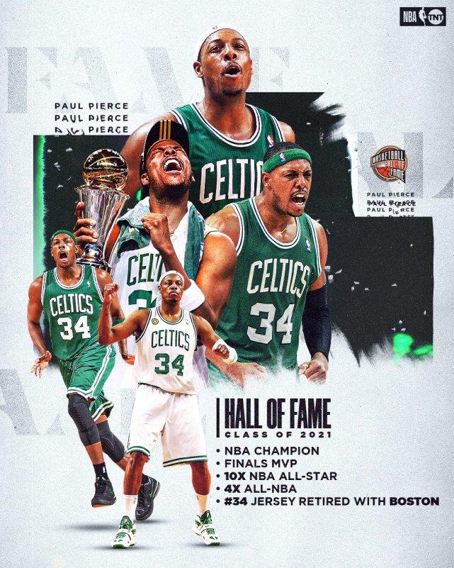 入选名人堂,在皮尔斯看来,就是他篮球生涯这本书的“最后章节”。对于他来说,这本书的核心,是为绿军奋战的时光。皮尔斯在NBA打了19个赛季,其中15个赛季效力于凯尔特人。10次入选全明星,4次入选最佳阵容,帮助球队在2008年夺得总冠军,他本人也当选总决赛MVP。2018年2月份,凯尔特人退役了他的34号球衣。