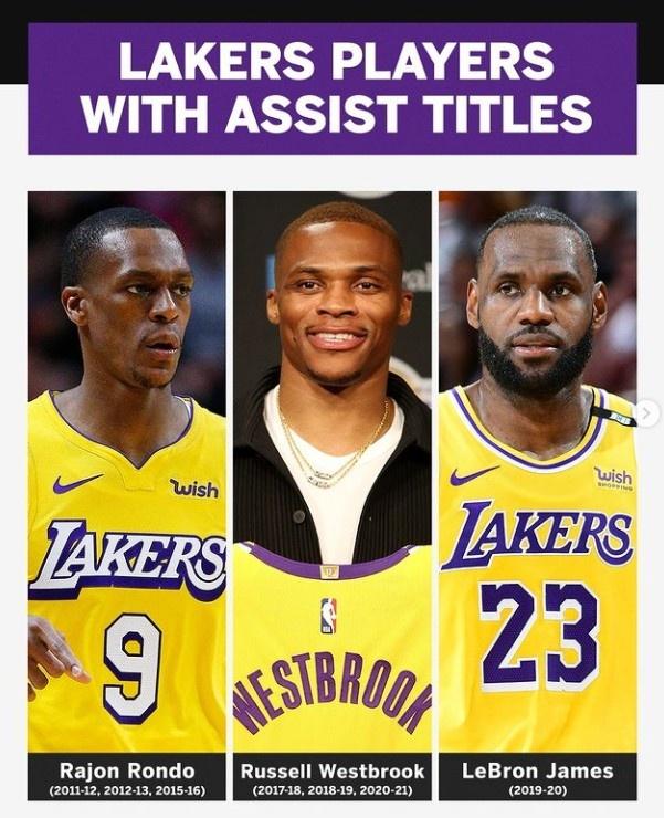 24直播网9月11日讯 近期美国媒体晒出了一组湖人球员助攻的统计数据,其中显示湖人球队中有三名球员拿过得分王的称号,他们分别是威少、隆多、詹姆斯,过去的十年这三人包揽了7次。特别值得一提的是其他的三次分别被保罗得了两次,哈登得了一次。