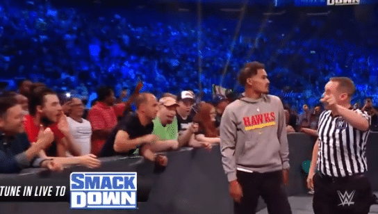 24直播网9月11日讯 老鹰球星特雷-杨现身麦迪逊花园球馆引热议,不仅惨遭纽约观众狂嘘,而且因在比赛中偷袭WWE拳手被罚出场,现场观众朝他挥手说再见,俨然成为纽约新公敌。