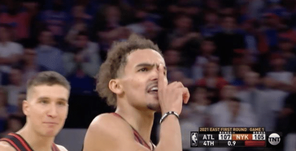 上赛季的季后赛,特雷-杨带领老鹰4-1淘汰尼克斯,曾遭纽约球迷的嘲讽、谩骂,甚至被人身攻击秃顶,而特雷-杨则用闭嘴手势以及弯腰鞠躬的姿势回应尼克斯球迷,他和尼克斯球迷早已成为仇家;如今特雷-杨以嘉宾的身份再次来到麦迪逊花园球馆。