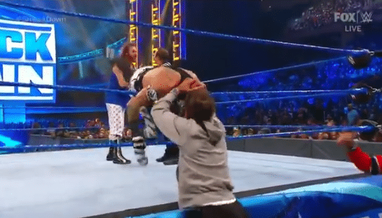 比赛期间,特雷-杨突然跑到擂台旁边,攻击雷-密斯特里奥,裁判直接把特雷-杨罚出场,之后特雷-杨装出一脸无辜的样子,现场观众开始向他挥手告别,由于吹杨一直不愿离场,裁判把他请出现场;当然了,这只是一场秀,特雷-杨扮演了反派角色。