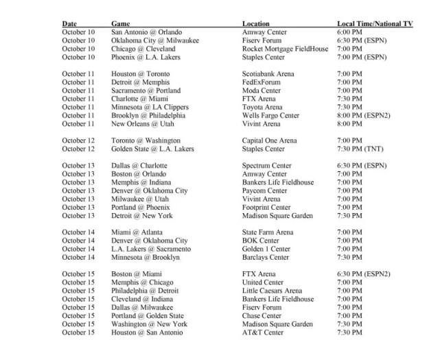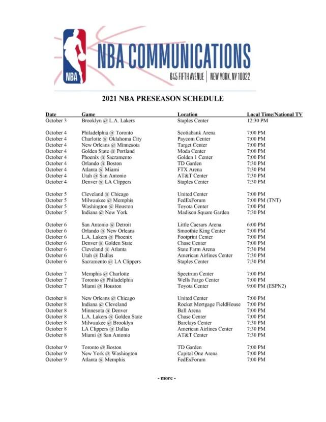 NBA公布季前赛完整赛程!13天66场大战,湖人10月4日首战篮网