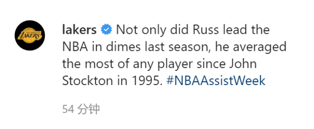 26年来最高!湖人官方晒威少助攻数据,沃帅:再不用害怕和他交手