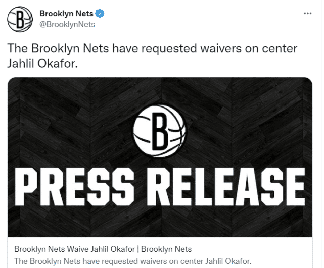 篮网官宣裁掉奥卡福!一操作可省670万奢侈税 两悍将争最后一席