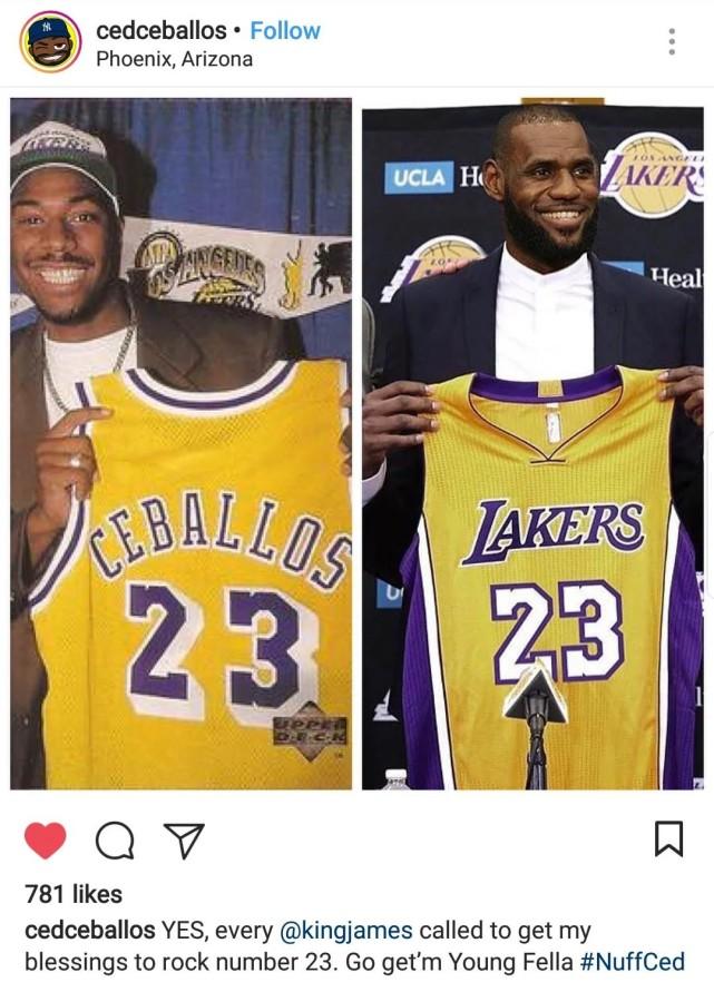 1994-95赛季是塞巴洛斯为湖人效力的第一年,那个赛季他场均贡献21.7分8篮板,首次也是唯一一次入选全明星。塞巴洛斯在湖人效力时身穿23号球衣,2018年,詹姆斯加盟湖人时,还曾给塞巴洛斯打电话,得到前辈祝福后决定穿上湖人23号。