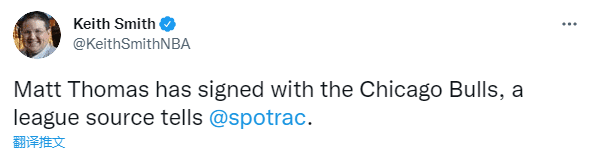 据名记Keitch Smith报道,后卫马特-托马斯已经签约公牛,上赛季马特-托马斯总共打了45场常规赛,场均上场7.2分钟拿到3.1分4助攻1篮板,今年8月份在合同转为保障之前被爵士裁掉,现在他又找到工作,将成为德罗赞、鲍尔等人的替补。