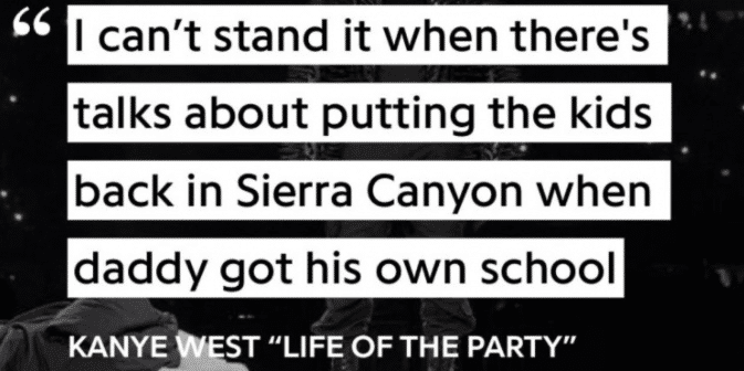 没有一点遮掩,侃爷在新歌里面果断写道:“我真的无法理解,爸爸自己办了学校,却非要把儿子送去塞拉峡谷上学。”,爸爸办学校和塞拉峡谷(布朗尼上学的地方)联系在一起,侃爷作为一个说唱歌手,他在diss谁还不清楚吗?因为侃爷一直是湖人死忠,同时一直是NBA顶流的场外明星,歌词是那么直白了,但詹姆斯和侃爷双方暂时没有对此事做出回应。
