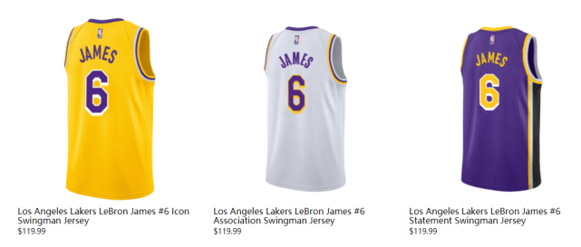 湖人在线商店,已经上架了三个颜色的6号球衣,球迷版定价是119.9美元(约774元人民币)。湖人在线商店在社媒上写道:“勒布朗-詹姆斯的6号球衣官方到货!现在,就成为第一批拥有詹姆斯新球衣的球迷吧!”