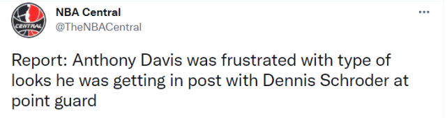 24直播网9月02日讯 ,据Bleacher Report记者Eric Pincus报道,消息源透露,上赛季,湖人球星安东尼-戴维斯对于自己与施罗德的合作感到沮丧,因为他在低位时没能从施罗德那里接到像前一年朗多那样质量的传球。