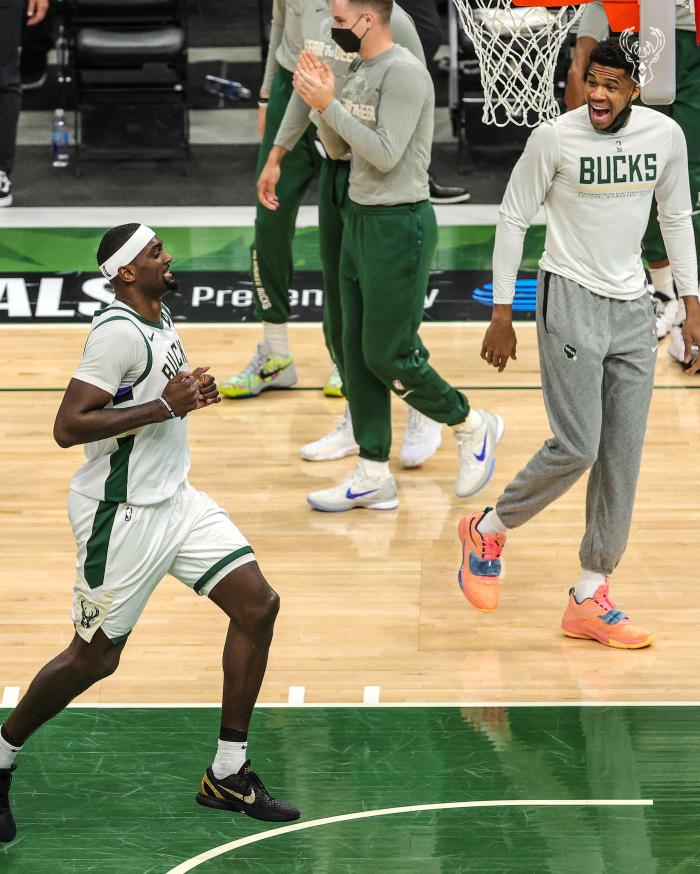 此前东决G5,字母哥因伤休战,米德尔顿、霍勒迪、大洛佩兹和波蒂斯都轰下20+,四大主力合砍106分带队击败老鹰夺赛点,字母哥坐在场边疯狂庆祝。不久前,雄鹿官方宣布字母哥因伤大概率缺席第六场比赛,预计将再次因伤缺阵。
