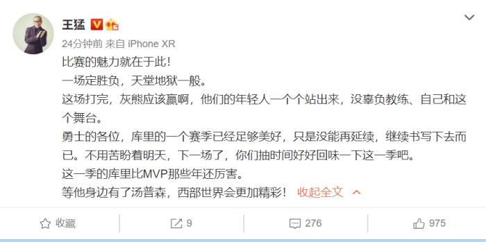 24直播网讯勇士输了,灰熊晋级,一场定胜负就是这样紧张激烈,也是比赛的魅力之处!勇士本赛季提前结束,但赛季后半段他们的表现已经不错了,应该送上掌声!