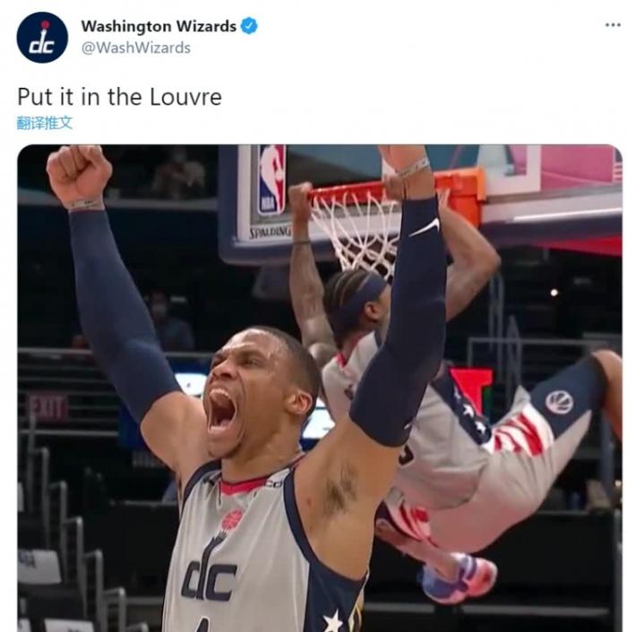 不管怎么说奇才能杀入季后赛已经算完成了任务,两个月前奇才队的战绩曾经是17胜32负,他们在一度多输了15场的情况下最终仍挺了进季后赛。而上一支做到这一点的球队是96-97赛季的太阳队。对于这场胜利奇才很开心,官推赛后晒出了威少比尔连线的图片并附文“把它挂进卢浮宫里!”