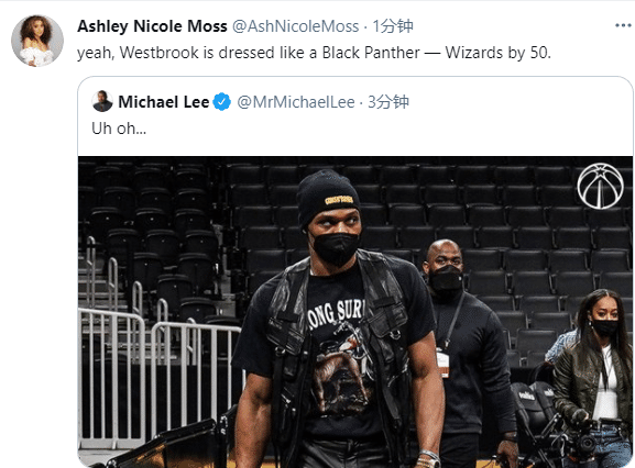 NBA潮流界的扛把子吗?威少身穿黑色皮鞋、黑色皮裤、黑色T恤、黑色马甲和黑色帽子,走起路来十分帅气且霸气,手臂上的肌肉凸显出来,威少表情中露出狠劲,还有眼神杀;对于威少的霸气入场照,名记Michael Lee发推:哇哦;Ashley Nicole发推:是的,威少穿的就像黑豹。