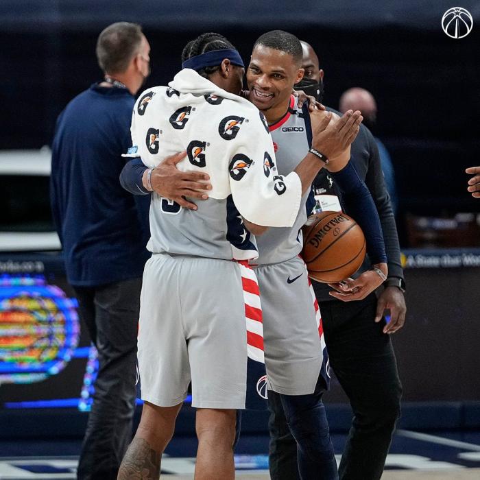 附加赛对阵凯尔特人,奇才首发五虎是威少、比尔、内托、八村塁和莱恩,比尔带伤出战,虽然腿筋伤势还没痊愈,但比尔上场没有时间限制;奇才和凯尔特人一战定输赢,赢者直接以东部第七的身份晋级季后赛,因此奇才双星全都出战,力求拿下这一场胜利。