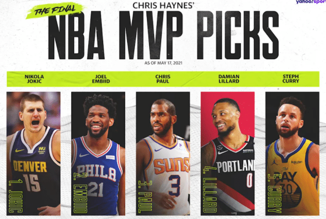 名记Chris Haynes把自己的MVP第一选票(10分)投给了约基奇,第二选票(7分)投给恩比德,第三选票(5分)投给保罗、第四、五选票分别投给利拉德和库里。