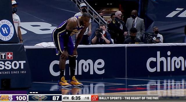 惊的是什么呢?在比赛的第四节,詹姆斯一条龙反击上篮再一次出现崴脚的情况,老詹在场边休息了一会后,一瘸一拐地回到替补席,随后詹姆斯并没有再回到比赛,这一幕也让湖人球迷揪心,没有了詹姆斯,湖人季后赛不是完犊子了吗?