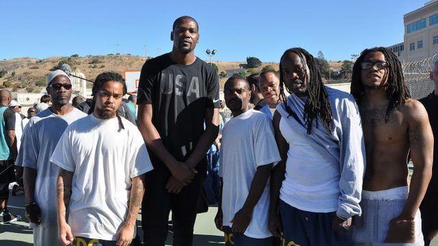 在这个没有自由的地方,要如何调动、引导这些人回到生活正轨呢?篮球成为了最重要的方式,在圣昆廷监狱,他们有自己的联赛,只要他们能够赢得赛季的冠军,他们就有机会得到和金州勇士发展联盟球队打一场球的机会,值得一提的是,虽然这些人不能和勇士球员打球,但是包括库里、格林等人每年都会到圣昆廷监狱去看望这些人,并且做一些互动。