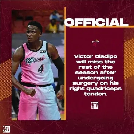 热火官方今日宣布,奥迪将在明日于纽约接受右四头肌肌腱修复手术,确定剩余赛季不会再上场,目前也暂无回归时间表。