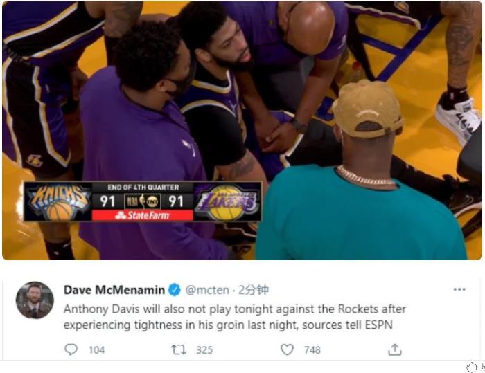 可是相比开拓者和独行侠的全力以赴,湖人队这边的反应就让球迷有些摸不透头脑,对阵火箭的比赛事关附加赛,可是湖人队这边不仅此前报道的詹姆斯并没有复出,昨天拼到快抽筋的浓眉哥也宣布缺席比赛,这无疑也给这场比赛增加了许多的变数。