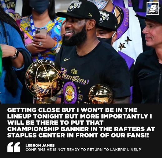 最后是詹姆斯自己给出的答案,为何缺席这场球迷眼中关键的比赛呢?詹姆斯在社交媒体上表示:我已经很接近复出,但我今晚不会出战,不过更重要的事,我会来到斯台普斯球馆,在球迷面前升起总冠军旗帜。