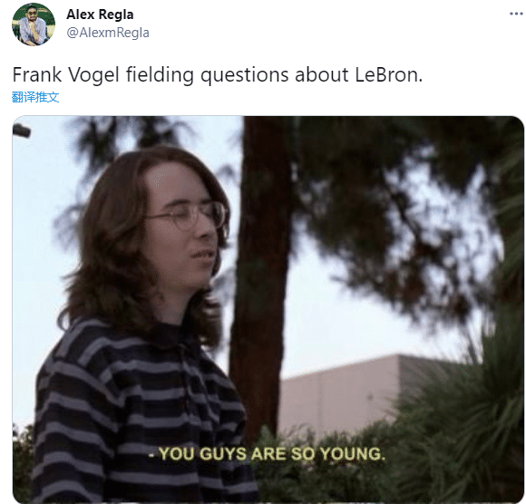 36岁詹姆斯因脚踝扭伤连续缺席20场比赛,这是他职业生涯最长休战纪录;此前ESPN名记透露詹姆斯最快将在本周复出,但对于詹姆斯何时复出的话题,沃帅只字不提,仅仅只是用“无限期休战”回应记者;对此记者晒趣图调侃:沃格尔觉得你们还是太年轻了。