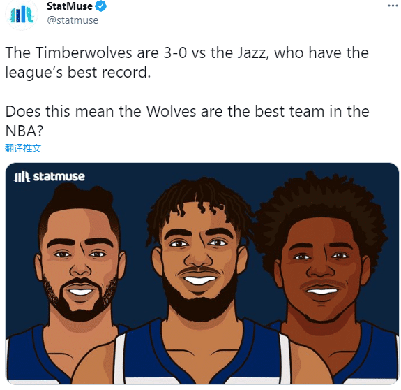 全场比赛,唐斯轰下21分11篮板,爱德华兹14分9篮板,关键球员拉塞尔拿到27分12助攻,关键时刻上篮绝杀联盟第一;美媒StatMuse发推写道:本赛季森林狼3-0横扫联盟第一,这是不是意味着森林狼是联盟最好的球队?