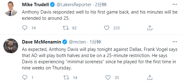 24直播网讯 湖人再次对阵独行侠之前,沃格尔透露浓眉复出首战后的感受,并且明确表示浓眉复出第二战将会出战25分钟,也透露了湖人最后13场比赛的计划。