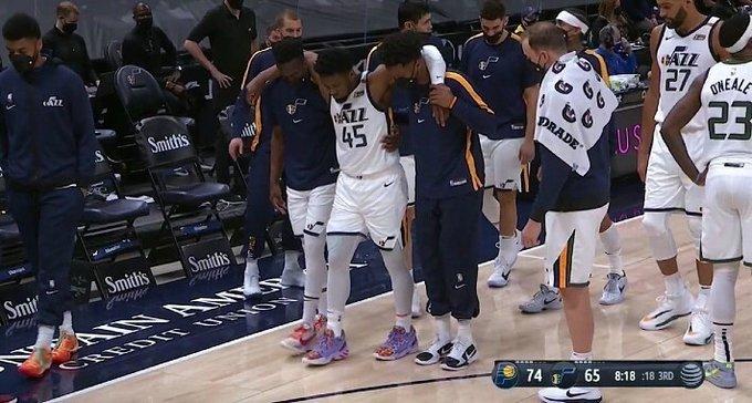 我们先来说说爵士这边,作为西部老大,爵士今天让球迷有无限的期待,可是4月17日正在 爵士对阵步行者的第三节比赛中,球队核心米切尔在拼抢中扭伤了自己的脚踝,伤退离场。不过所幸的是,著名篮球记者SHAMS很快更新了报告,米切尔的伤情是隐形,低位脚踝扭伤,虽然球队对于米切尔的伤情表示乐观,可是显然在接下来的常规赛中,爵士会慎重的使用米切尔,毕竟外线核心要是没了,爵士本赛季又是空欢喜一场。