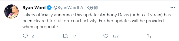 24直播网讯湖人巨头终于要复仇了,湖人对阵凯尔特人赛前,沃格尔透露安东尼-戴维斯已经获得参加球场完整训练的许可,这意味着浓眉小腿伤势已经痊愈,虽然接下来几场比赛,浓眉不太可能出战,但这是浓眉复出的重大利好;湖人也已官宣这个喜讯。