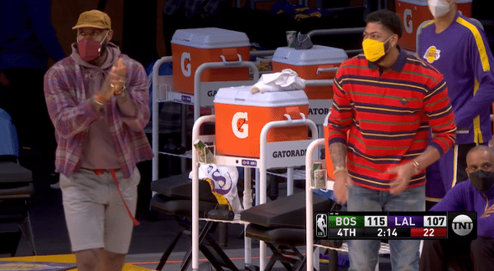 镜头再次给到场边,詹姆斯和浓眉的从沮丧到站起来为队友加油鼓掌,凯尔特人再次换上布朗,塔克关键三分也有,虽然最终输了,但湖人残阵打出超级攻势,赢得尊重。
