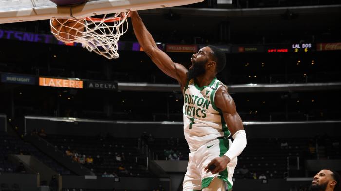 下半场,湖人第三节一直被压制,35岁小加索尔手指受伤仍旧带伤作战,把两个手指绑在一起,随后接连投进三记三分,单节11分带队追到仅落后5分;可是小加下场后,湖人进攻又停滞,凯尔特人再次领先到两位数。