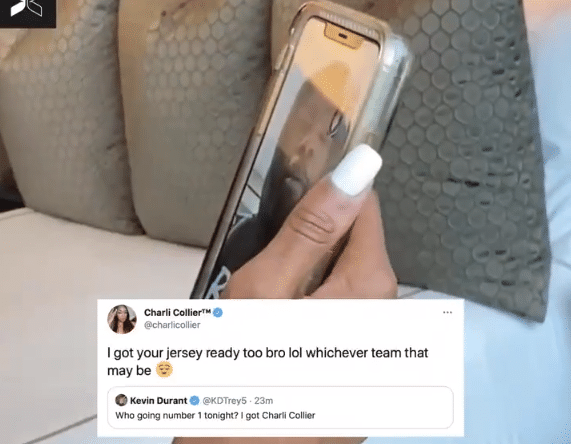 值得一提的是杜兰特在选秀大会开始前还和科利尔视频连线,两人都是德克萨斯大学出来的,科利尔此前就是杜兰特的球迷,她在赛场上的号码就是35号,这也是此前杜兰特长期穿着的号码,来到篮网才换成了7号。