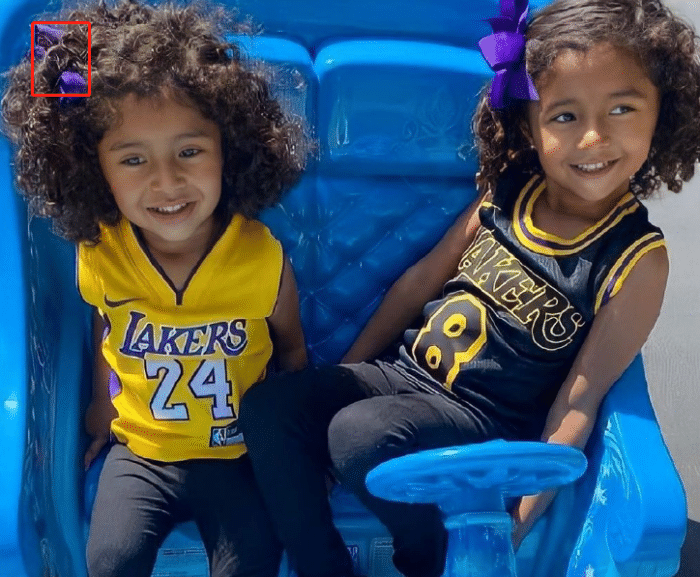 而一个细节可以说明瓦妮莎真的用心了,她和科比一样,都深爱湖人。比安卡和KoKo除了穿着科比的8号和24号湖人球衣之外,她们头发上的蝴蝶结,同样是紫金配色。紫金颜色已经成为湖人球衣的经典配色,而大家谈起科比,就会想起紫金湖人,同样,说起豪门湖人队,最具代表性的人物就是科比。