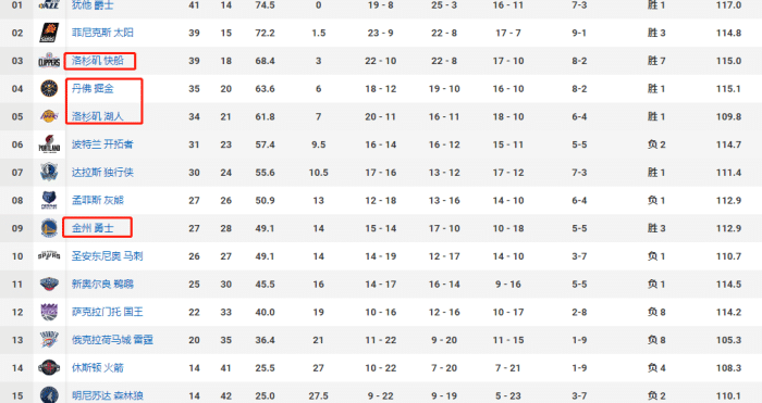 100-98,险胜活塞后,快船已经取得7连胜,不过,快船队的战绩排名却没有变化,原地不动,依旧排在西部第三,前两位分别是爵士和太阳。爵士以41胜14负排在西部第一,而太阳39胜15负紧随其后。
