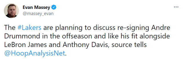 24直播网4月15日讯,据NBA记者Evan Massey报道,消息源透露,湖人计划在休赛期和安德烈-德拉蒙德讨论续约的事宜,他们认为德拉蒙德很适合和詹姆斯、浓眉一起打球。很快有球迷表示,庄神还没和詹眉一起打过球,湖人怎么就知道适合呢?Massey回应道,那是因为湖人了解詹眉的技术特点,并知道庄神将在那两位巨星身边如何打球。
