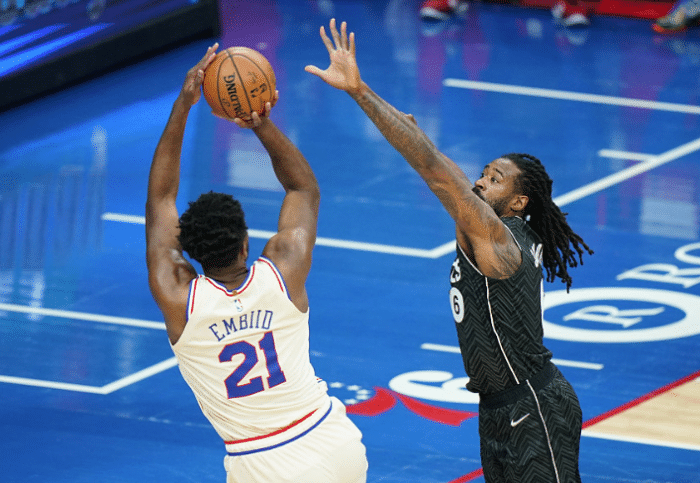 24直播网4月15日讯北京时间4月·15日,NBA东部迎来强强对话。东部第一费城迎战东部第二篮网,稍有缺憾的是,篮网这边三巨头中的杜兰特和哈登都没有出战,最终费城123-117击败篮网,将双方之间的差距拉开到1个胜场。不过这场比赛的最后一节,一度领先22分的费城,被篮网打出了21-2的疯狂攻势,险些遭到逆转。而赛后恩比德也显得非常沮丧,对于球队的表现也很不满。