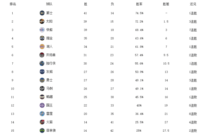 24直播网4月15日讯进行的NBA常规赛已经都结束了,今天有多达11支西部球队出战,各队也是有喜有忧,快船7连胜,勇士3连胜反超马刺,森林狼雷霆惨败等等。西部的格局也发生了很大的变化,接下来我们一起来看看西部最新的排名: