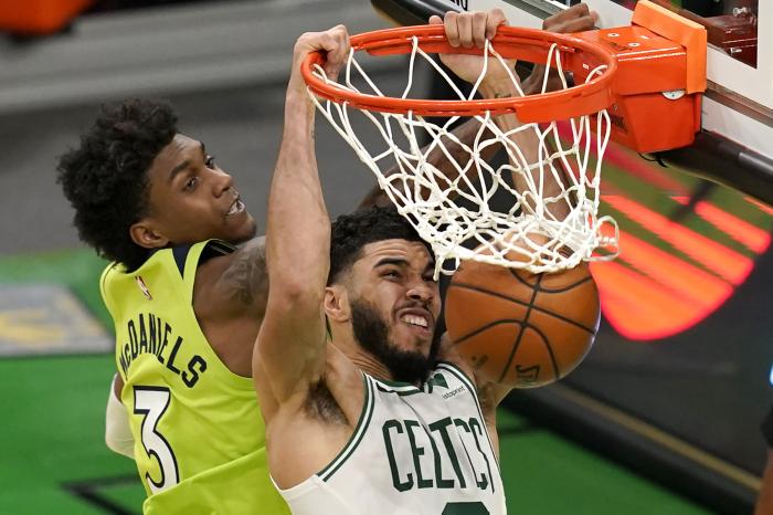 24直播网4月10日讯 NBA疯狂纪录日来了;凯尔特人加时145-136击败森林狼,塔图姆出战40分钟25投16中、三分10中6轰下53分10篮板4助攻,轰下生涯得分新高,23岁塔图姆狂砍53+10狂刷历史纪录;公牛球星拉文狂砍50+创纪录,鹈鹕球星锡安37+15也刷爆纪录。