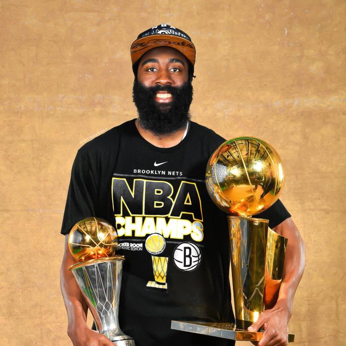 有球迷在哈登评论区晒出一张哈登抱着总冠军奖杯和FMVP奖杯的P照,言外之意就是篮网今年夺冠,哈登夺得总决赛MVP。